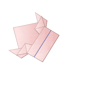 端にすき間を残すように谷折りします。「ぴょんぴょんガエル」の完成です。